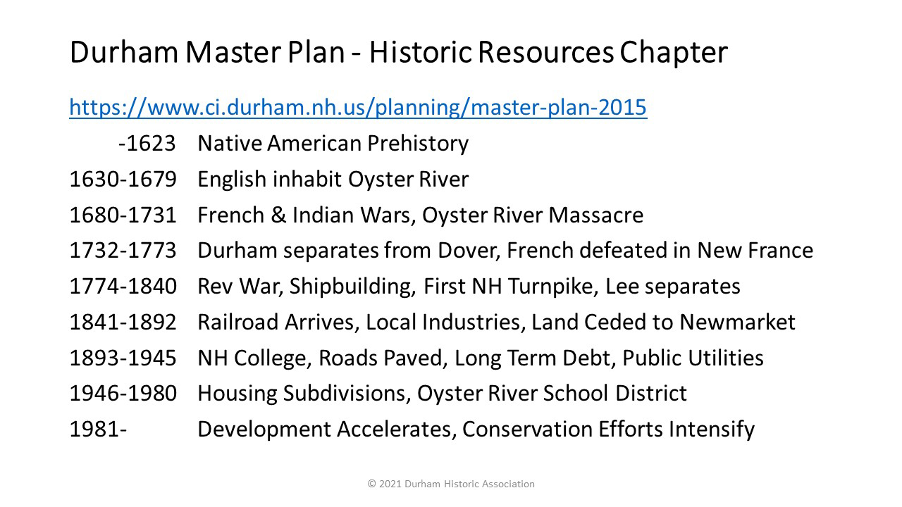Historical Periods in the Development of Oyster River-Durham